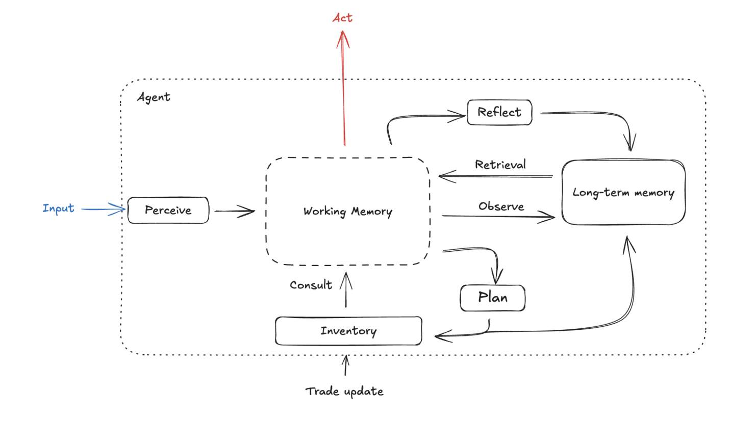 The cognitive architecture is key. We have working memory for immediate context, long-term memory for persistent identity and history, a reflection module to generate introspection after their interactions, and a planning module to create future actions for the agent.